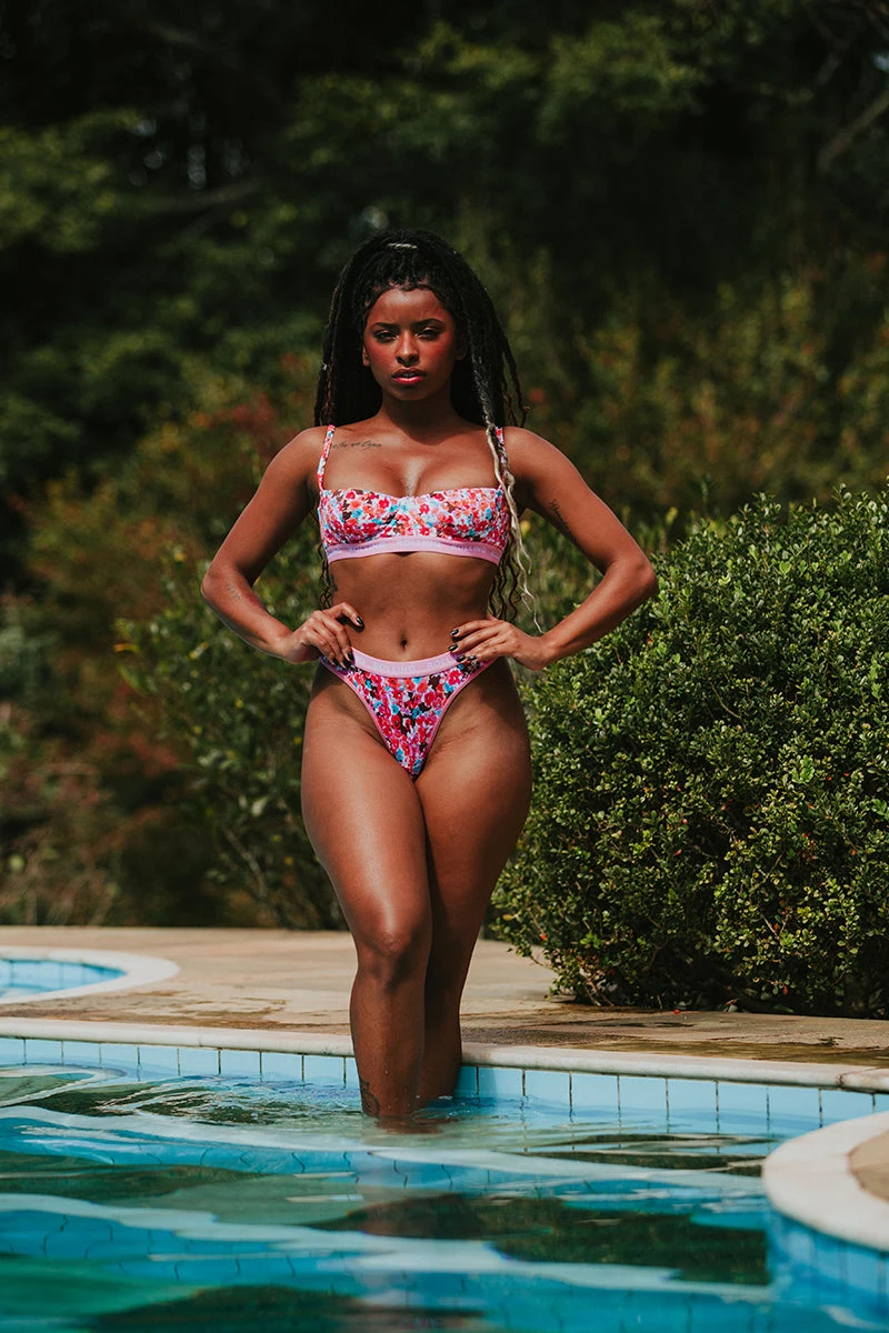 Rolling’s Balconette Top is a playful take on a classic style. Featuring structured cups and an adjustable bra style closing at the back.