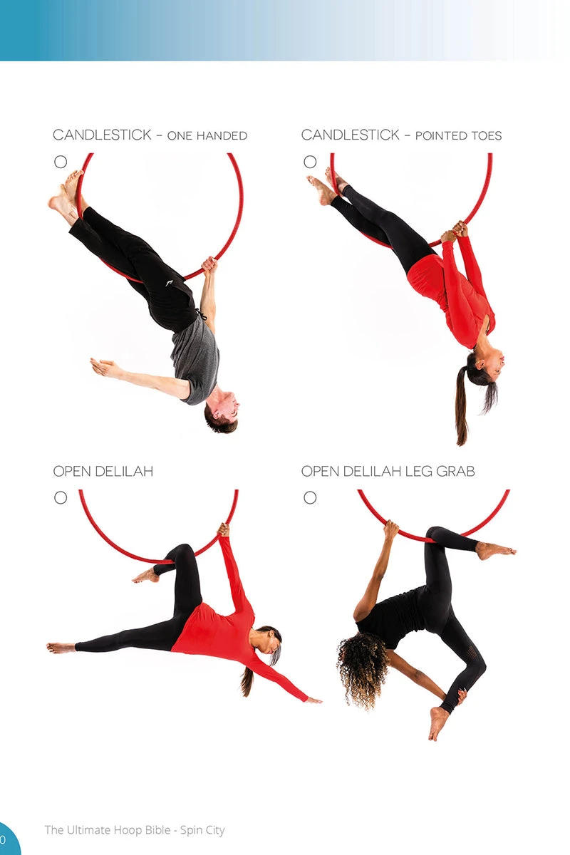 The 6th Edition Spin City Hoop Bible is a great reference book for aerial hoop enthusiasts worldwide. This book has been produced to help you identify your Candlestick from your Cradle, your Side Star from your Wineglass and so much more – with over 1800 reference photos. The first three chapters comprise the core Spin City syllabus (taught in their instructor training courses) with a colour-coded key to identify the level of all other moves. The 6th edition also includes a handy tick spot, so you can check off each move as you achieve it!